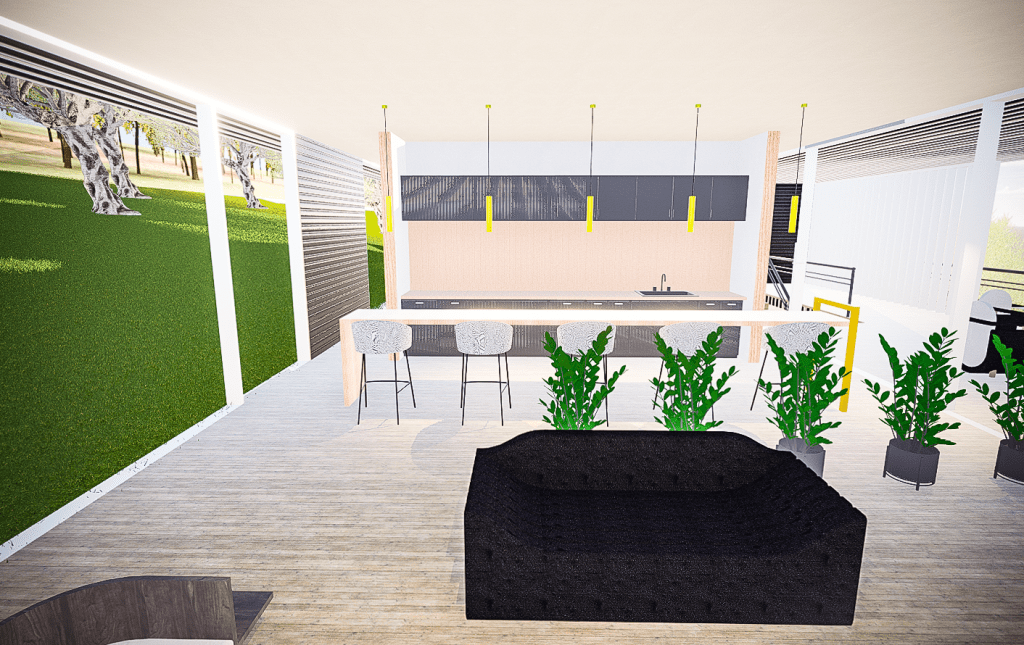 Inside, the Summer House features spacious interiors, with plenty of room for entertaining and socializing. The large windows and doors, along with the open floor plan, provide ample natural light and create a sense of connection to the outdoors.