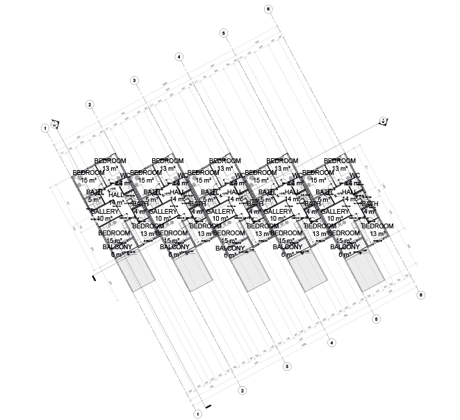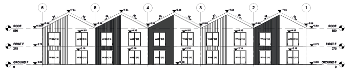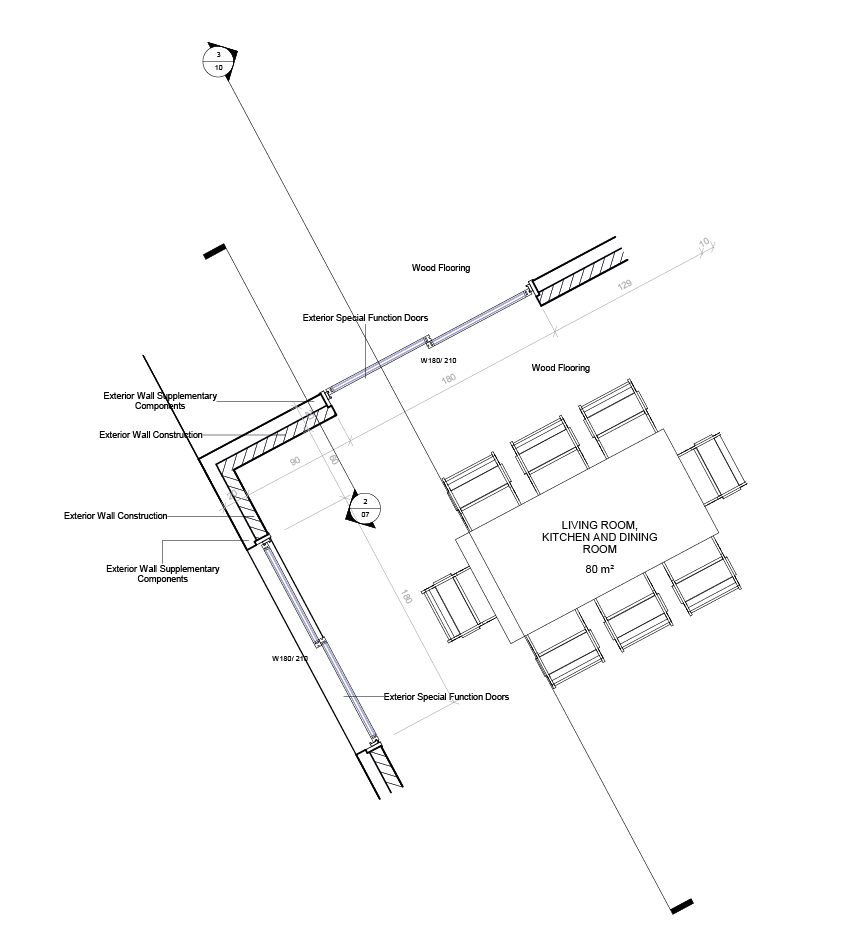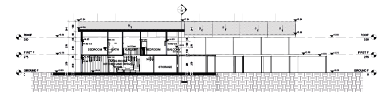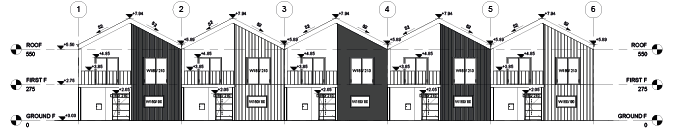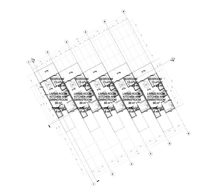 The villa site comprises of 5 identical villa blocks with 5 bedrooms, 2 bathrooms and WCs and a large united area of living room, dining room and kitchen. Pergolas in front of the units are planned to be used as a garage for a car and a parking place for a bicycle.